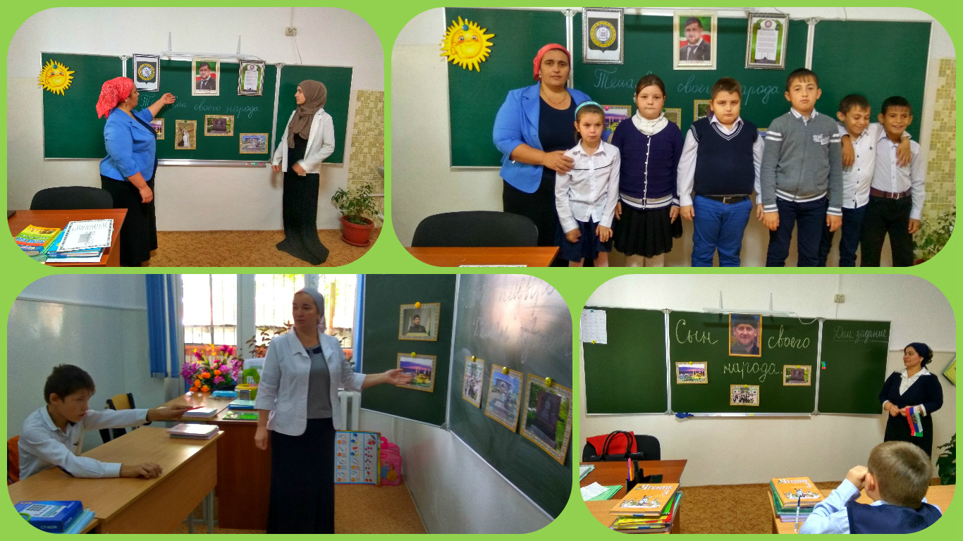 05.10.2016В МБОУ " СКОШ г.Аргун" проведены классные часы,посвященные Дню рождения Главы Чеченской Республики Рамзана Ахматовича Кадырова.Открытый классный час на тему:"Къоман к1ант" проведен в 3 классе Пайзулаевой Айшат Маруповной.